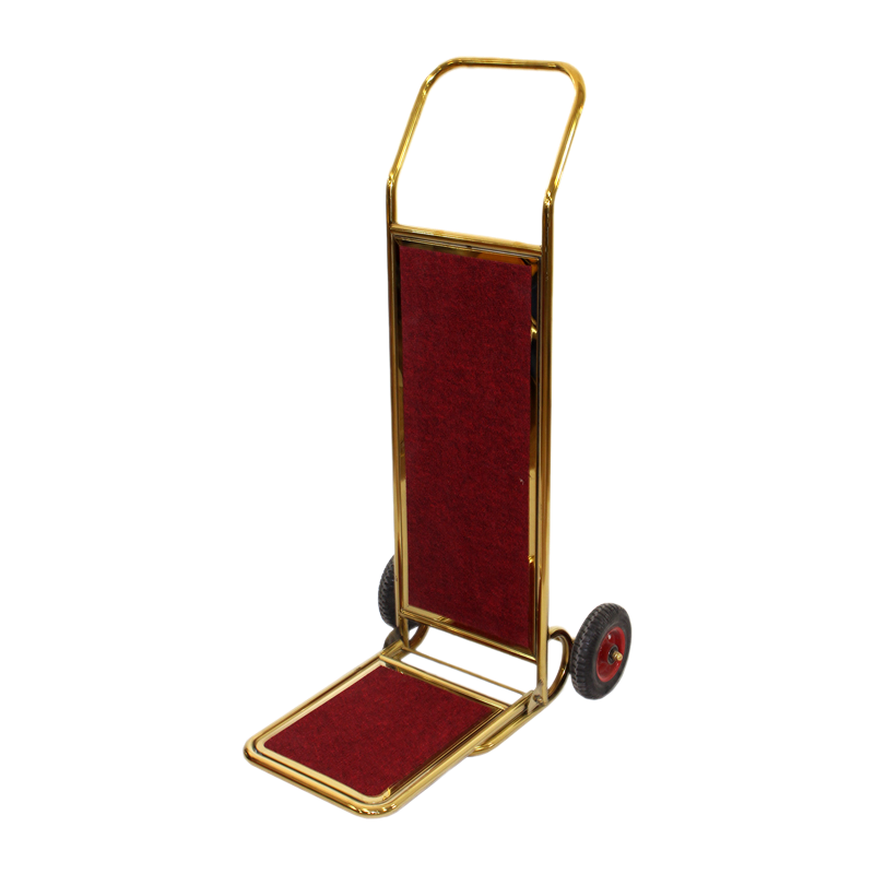 ترولی (چرخدستی) حمل چمدان هتلی لوکس با طراحی کلاسیک و رنگ طلایی، انتخابی ایدهآل برای هتلهای لوکس، مراکز اقامتی و فضاهای پذیرایی سطح بالا است. این محصول با ترکیب فلز مقاوم و پوشش فرش قرمز، جلوهای شیک و حرفهای به محیط میبخشد و تجربهای دلپذیر برای مهمانان فراهم میکند.