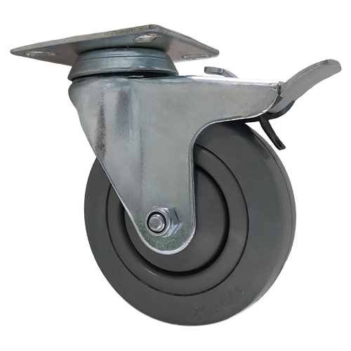 نوع ترمزدار این نوع چرخ ها ویژگی گردانی همچون نوع گردان دارد با این تفاوت که پدالی بر روی آن قرار دارد که با فشردن آن چرخ بدون حرکت باقی می ماند و کاربردهای آن برای تخت های بیمارستان می باشد تا بتوان تخت را در یکجا به صورتی که حرکت نکند قرار داد.