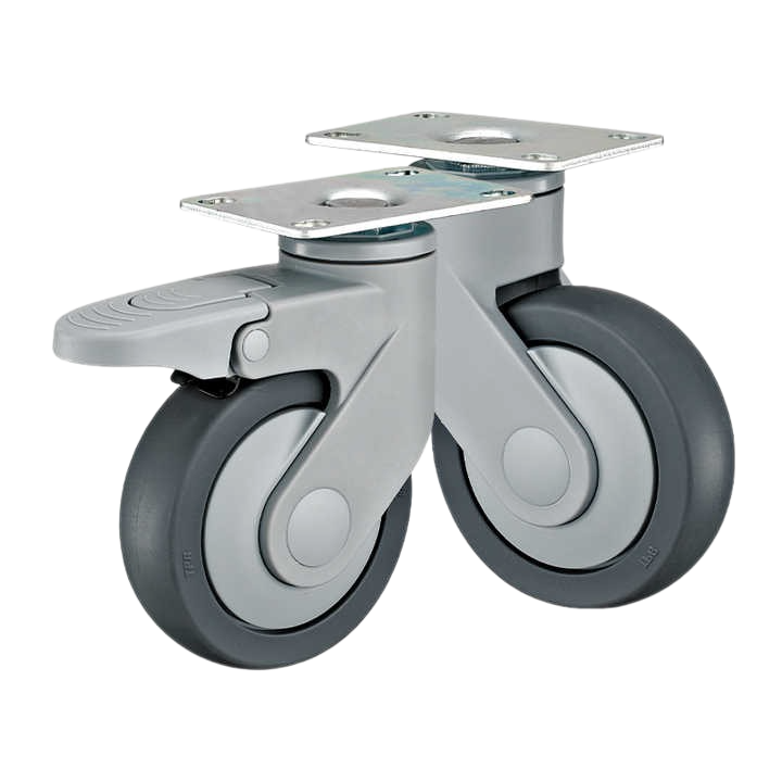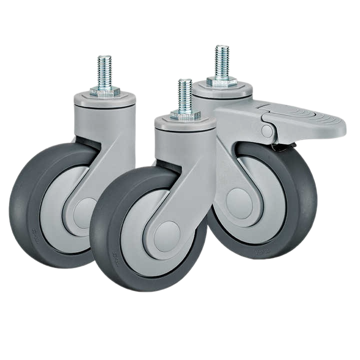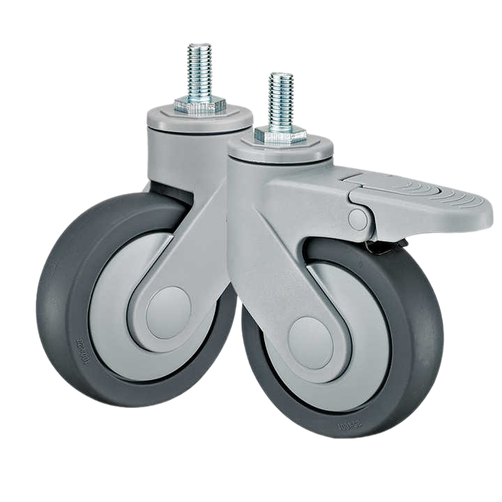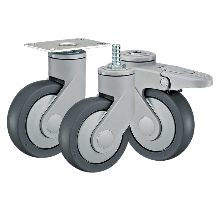 این چرخ ها در تمام تجهیزات بیمارستانی مانند کمدهای کنار بیمار،پایه های سروم،گاری های حمل اکسیژن، اتاق عمل و …. استقاده می شوند.چرخهای پلاستیکی با طراحی مدرن مخصوص تجهیزات پزشکی، مبلمان اداری ، مبلمان منازل و سیستمهای حمل و نقل می باشد.بیمارستانی تمام پلاستیک ترمز راست پیچی، توسط متخصصان ترمزی طراحی شده است، تا در صورت نیاز مانع از حرکت چرخ شود و برای مصرف کننده راحت و کاربردی باشد.