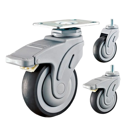 چرخ های بیمارستانی تمام پلاستیک در نوع پیچی و کفی از کاربردی ترین چرخ ها می باشد که به دلیل استفاده از پلاستیک با کیفیت و فشرده برخلاف فلز در برابر آب مقاوم است و زنگ نمی زند. این چرخ قابلیت چرخش 360 درجه را دارد و حرکت اجسام را در تمام جهت ها میسر می سازد. این چرخ در دو نوع ترمزدار و بدون ترمز طراحی می شوند.